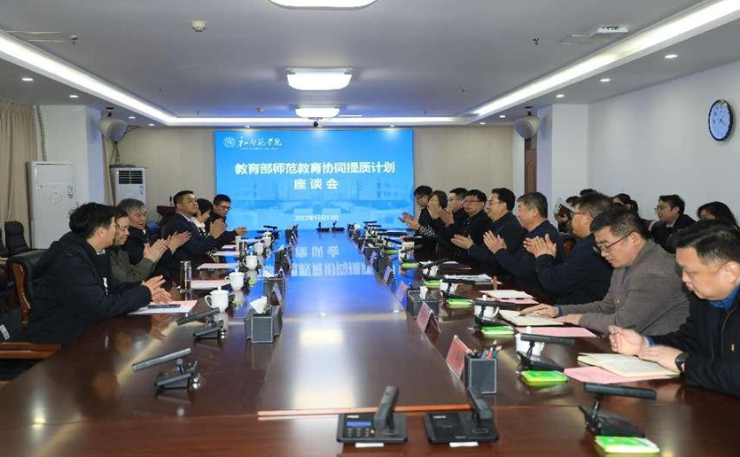 会上,孙政代表学校对华桂宏一行的到来表示欢迎,随后介绍了学校基本情况和师范教育协同提质工作进展情况。学校重视师范教育协同提质计划带来的发展机遇,成立了由学校党政主要领导任组长的工作领导小组,每月研究调度协同提质重点工作,每两周专题推进工作落实。计划实施以来,通过大中小学思政课一体化“同课异构”研讨,协同教研,切实提高教师教学创新能力;通过系统组织帮扶学校为师范生开展师德、教学能力提升培训和示范课、观摩课等,受益学生3400多人,助力基础教育质量提升成效逐步显现。同时,校主要领导五次赴帮扶学校主动联系对接,举办线上线下各类对接活动百余场,联合团组高校教师、基础教育学校教师、师范生组成“四位一体”项目组成员,开展面向基础教育的教学实践项目研究,依托项目研究建立了“一对一”帮扶结对子稳定的协作关系,初步建立起教师教育共同体。
