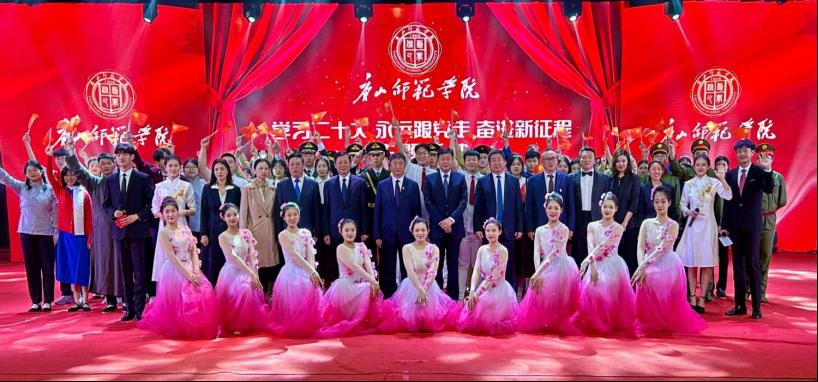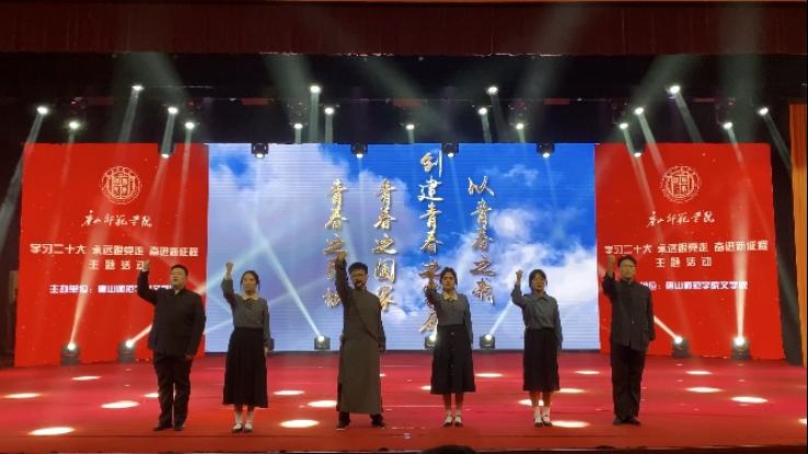 表彰大会结束后,团委和文学院共同开展了“学习二十大 永远跟党走 奋进新征程”主题活动,师生通过舞台剧、朗诵、歌舞的形式,讴歌了李大钊、江竹筠、夏明翰等老一辈革命家在革命战争年代抛头颅、洒热血的光荣事迹,展现雷锋事迹、弘扬雷锋精神,讲述了戍边英雄事迹,通过航天员王亚平、短道速滑冠军武大靖等展现了新时代榜样的力量。师生纷纷表示,这堂别具一格的大思政课,不仅深化了对党的二十大精神的认知理解,更坚定了师生爱党、爱国并为之团结奋斗的理想信念。