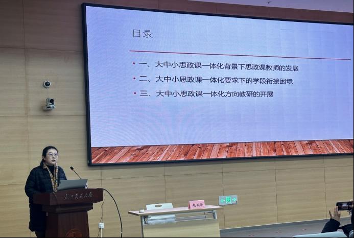 马克思主义学院赵婉华副教授受邀做了“大中小思政课一体化背景下思政课教师的发展方向”的专题讲座。讲座以大中小思政课一体化建设为背景,围绕思政课教师的专业发展、大中小思政课学段衔接的困境、思政课教师的教研等内容进行了理论讲授,并向全市大中小学思政课教师分享了纽约国际967线路测试思政课建设的成功经验,受到与会教师的一致好评。讲座后,作为点评专家,赵婉华老师对参加培训的思政课教师的说课进行了点评。