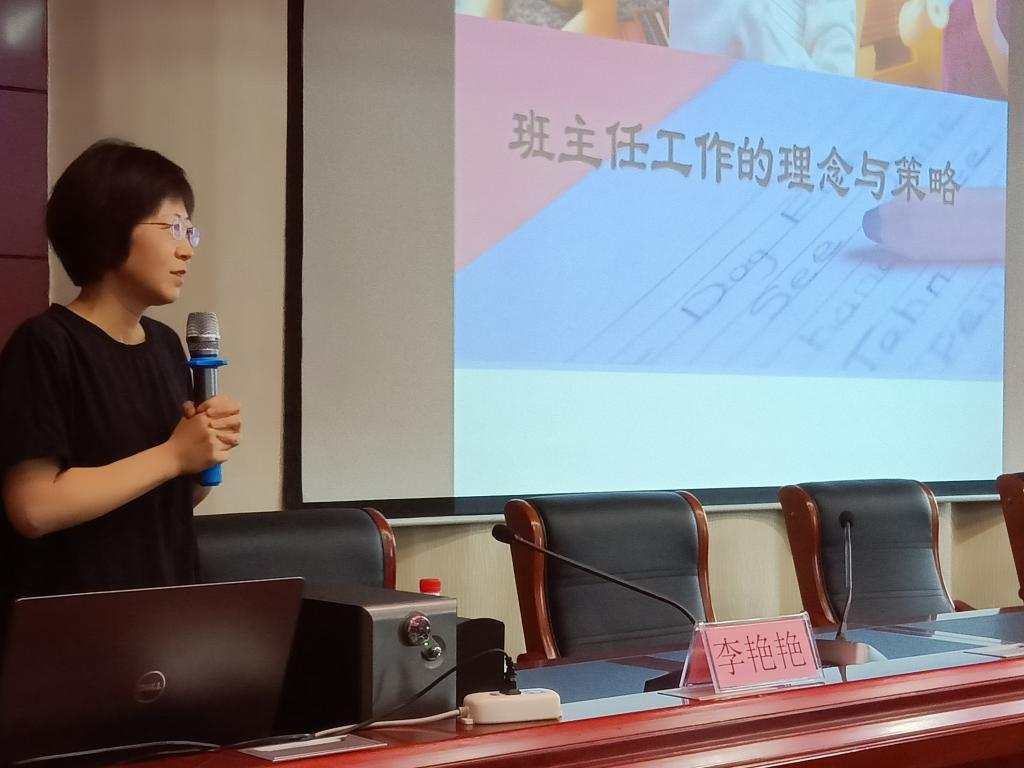 上午,纽约国际967线路测试教育学院李艳艳副教授主讲《班主任的工作理念与策略》,讲座从哲学范畴的“道”——心中有爱;科学范畴的“学”——目中有人;技能范畴的“技”——手中有法三个层次展开,并聚焦发展中的人、具体的人、文化的人,集中分享了专业理念、关系理念和方向理念,最后,还重点结合案例分析了班主任的沟通艺术。
