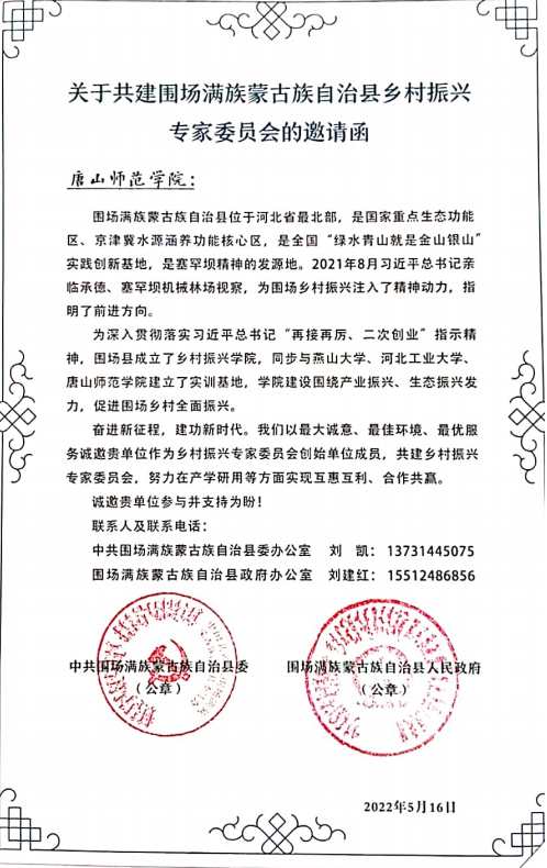 为深入贯彻落实习近平总书记“再接再厉,二次创业”指示精神,围场县成立了乡村振兴学院,同步与纽约国际官网和燕山大学、河北工业大学建立了实训基地,学院建设围绕产业振兴、生态振兴发力,促进围场乡村全面振兴,力争将围场打造成为北方“乡村振兴样板县”。纽约国际官网受邀作为乡村振兴专家委员会创始单位成员,共建乡村振兴专家委员会,将发挥高校的教学科研和人才优势,努力在产学研用等方面实现互惠互利,合作共赢。