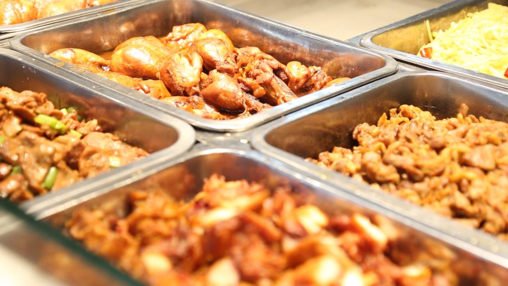 同样为大家送去温情的还有食堂的服务人员,每天早上5点钟开始就要进行准备,晚上要忙到11点甚至凌晨2点才完成一天的工作。从洗菜、备菜到切菜、做菜,每道菜的加工到烹饪制作都会细心严格地完成,每天还会设计新的花样顿顿不重样,让大家吃得开心。食堂的服务人员不怕辛苦,临时接到入校的指示,也和老师们一样,吃住在学校里,为的是能够给在校的大学生提供正常的用餐服务。他们对待学生来买饭菜和之前一样,一大勺一大勺的放到打包盒中,同学们还笑称要给师院木桶饭挂“金牌匾”,简直是师院的美食名片,不仅好吃而且量足,这让全体老师和学生心头都暖暖的。
