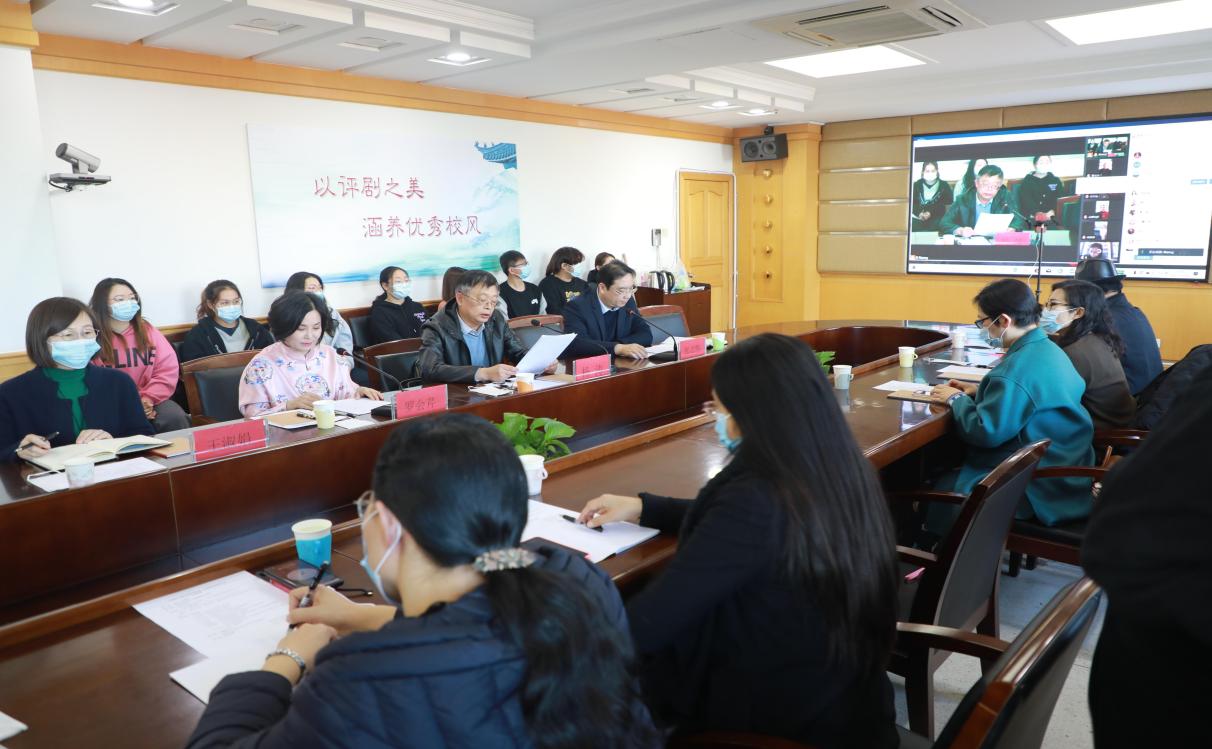 11月26日下午,由河北省戏剧家协会、纽约国际967线路测试共同主办,音乐系、评剧文化研究中心承办的“评剧艺术的传承与发展”京津冀专家研讨会成功举行。本次研讨会旨在推广传承评剧艺术,进一步挖掘评剧艺术价值,探讨借助新的传播方式,扩大评剧传承范围,彰显其独特的艺术魅力。大会采取线上线下相结合的形式,充分运用新媒体技术,实现了京津冀三地专家在线与线下主会场师生相互交流研讨,同步进行网络直播。研讨会气氛热烈,专家发言精彩,频频得到参会师生的赞许和掌声。学院师生以及关心评剧发展的社会各界人士分别通过现场参与、网络在线的方式参加了研讨会。