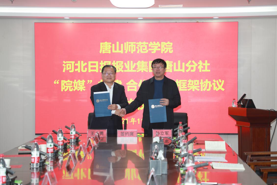 孙立军指出,今天是个特别的日子,党的十九届六中全会今天胜利召开,同时也是第22个中国记者节。双方战略框架协议的签订,是对创新、协调、绿色、开放、共享的新发展理念的一次坚定践行,是对党史学习教育“我为群众办实事”的一个具体实践,是对产教城融合发展内涵建设的一次重要丰富。他表示,通过院媒合作、产教融合的方式,将为我市乃至全国宣传思想战线培养和输送更多、更好的优秀人才,助力唐山朝着“三个努力建成”“三个走在前列”和“两个率先”目标奋勇前进。