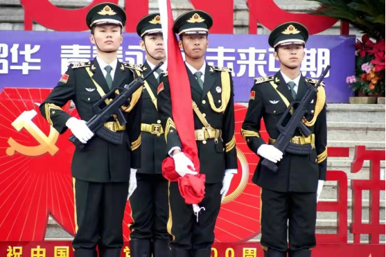 仪仗队队员董祥辰说:“今天我们有幸成为了场上焦点,心中有信仰,青年有力量,我今天感受到两点光荣,一个是作为仪仗队的队员参与到国庆活动当中,这身帅气的礼服,让我精神倍增;一个是开展这么高规格高质量的活动,让我作为在校生,感到惊讶并自豪!”