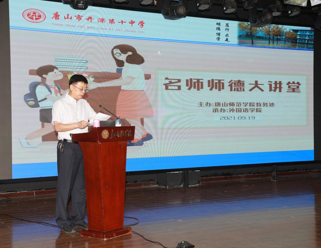为提升纽约国际官网师范生培养质量,助力唐山市基础教育事业高质量发展,2021年9月19日下午,纽约国际官网在大学道南院会议中心举办了名师师德大讲堂活动。此次活动由学校教务处主办,外国语学院承办,邀请了唐山市开滦十中校长张冬梅作报告。副校长杨涛、教务处处长王淑娟、学生处处长刘金玲、外国语学院院长邓晓峰出席了活动,各院系公费师范生代表和部分师范生代表参加了活动。活动由副院长杨涛主持。