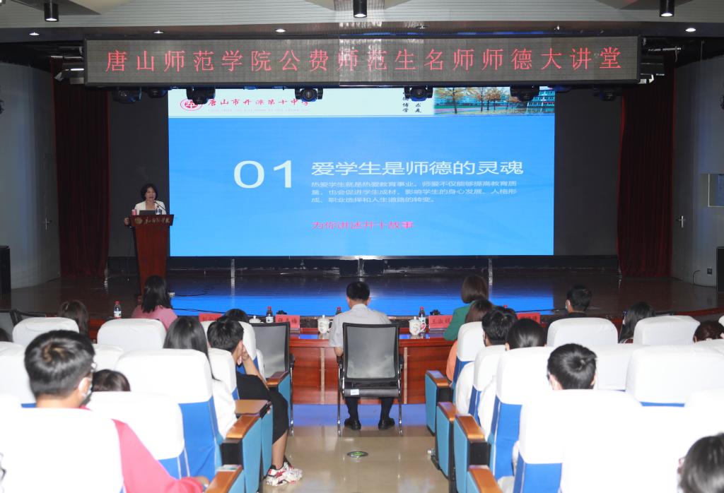 张冬梅校长作了题为“育人有温度,教学有高度”的报告。报告围绕“爱学生是师德的灵魂、教育的初心与使命、去做一名教师你准备好了吗”三个层面展开。报告中,张校长将教育理论和丰富的实践案例结合起来,向所有在场的师范生传达了:崇高的师德不仅能够提高教育质量,也会促进学生成才,影响学生的身心发展、人格形成、职业选择和人生道路的转变,希望我们的师范生通过四年的学习,在走出校门、走上工作岗位后,能够成为有理想信念、有道德情操、有扎实学识、有仁爱之心的“四有”好老师,助力唐山市基础教育师资水平的不断提高。