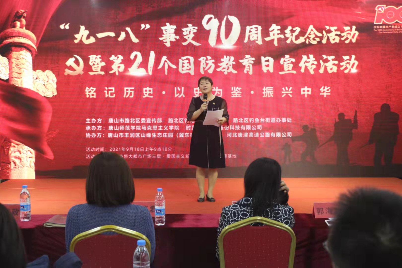 时维九月,序属三秋。为纪念“九一八”事变90周年,弘扬爱国主义精神,增强广大党员、青年的国防观念,引导广大党员、青年牢记历史、勿忘国耻,为实现中华民族伟大复兴而努力奋斗,马克思主义学院于2021年9月18日上午在唐山市新时代爱国主义创新研学教育基地隆重举办了“铭记历史、以史为鉴、振兴中华”“九一八”事变90周年纪念活动暨第21个国防教育日宣传活动。