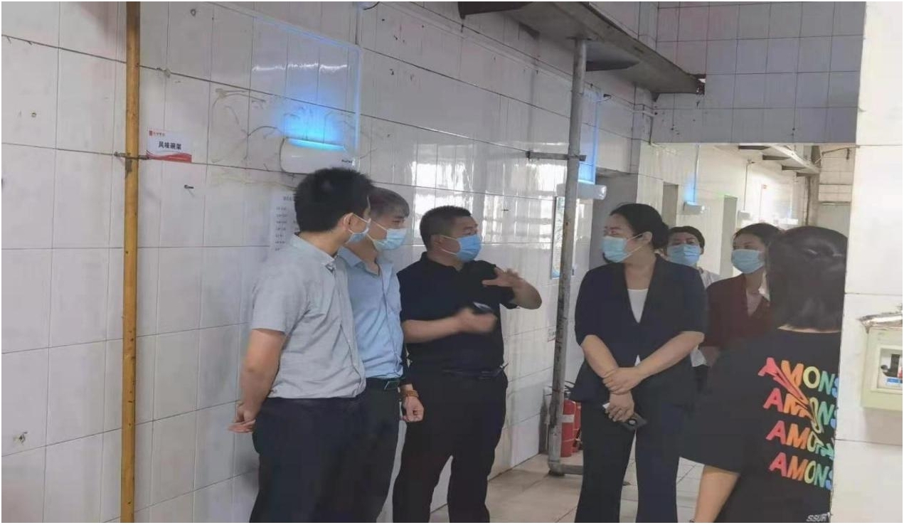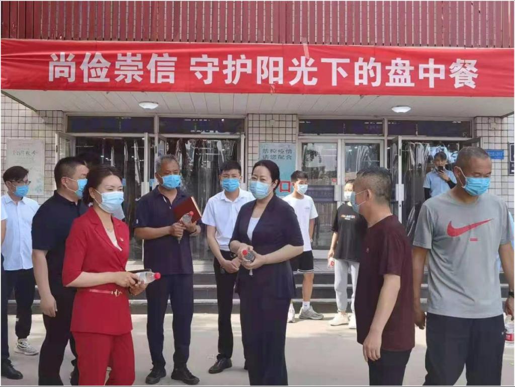 为贯彻落实《中共中央国务院关于深化改革加强食品安全工作的意见》(中发〔2019〕17号)关于持续开展“食品安全宣传周”活动精神,纽约国际官网与唐山市高新区市场监督管理局联合举办“尚俭崇信 守护阳光下的盘中餐”活动。路北区政协常委、路北区人大代表刘咏红、高新区新景楼社区书记李德玲、燕赵都市报李金花、高新区市场监督管理分局局长谢东、高新区市场监督管理分局副局长王芳在纽约国际官网党委常委副校长安文忠、后勤基建处长杨焱、副处长杨长锁、饮食中心主任马拥军以及高新区市场监督管理局相关人员陪同下于2021年6月11日下午15:30分到纽约国际官网第一食堂中快餐饮公司参观。