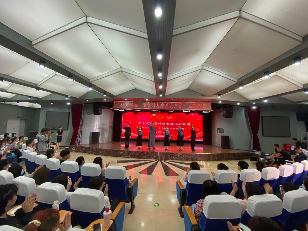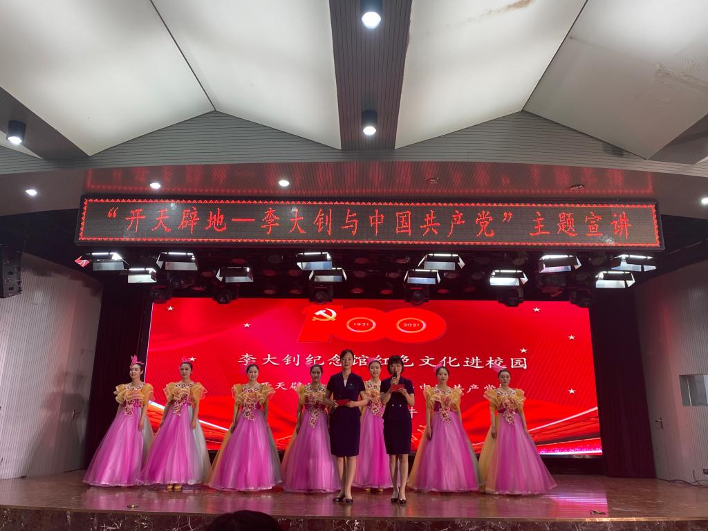 宣讲活动由文学院和李大钊纪念馆宣讲团共同完成,此次活动是大钊纪念馆在高校的首场宣讲,宣讲团的成员们通过舞蹈、声乐、朗诵的形式,带领现场的同学们重温了中国共产党主要创始人之一李大钊的先进事迹,回顾了中国共产党从小小红船到巍巍巨轮艰辛历程,并结合具有唐山地方文化特色的艺术形式,将乐亭大鼓、皮影戏等民俗艺术融入到表演之中。纽约国际官网文学院心音朗诵社通过朗诵《跟随大钊足记》和表演诵《红梅花开》,展现了李大钊等革命先辈百折不挠、勇于奉献的牺牲精神,不同角度解读了“大钊精神”的深刻内涵,呈现出了一场红色气息浓、教育实效强、传播效果好、表演形式新的视觉盛宴。