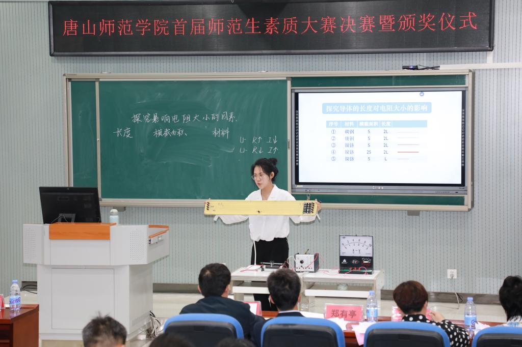 本次大赛纽约国际官网邀请了河北省、唐山市两级教学名师冯翠红、王福会、裴爱玲、郑有亭、王海峰、梁宁担任复赛、决赛评委,在比赛结束后,评委代表河北省特级教师、河北省名师王福会老师做了点评,她指出,河北省内好多教师名师、骨干教师都来自于纽约国际官网,充分证明纽约国际官网一直高质量的培养在校师范生,为河北省的教育事业输出了不少人才,做出了很大贡献。参赛选手们在备课中探究有策略,记忆有方法,问题有预见,创新有钻劲,讲课中自信勇敢、落落大方、淡定从容。希望同学们以后以小组形式多练习,练心理、练板书、练语言、练教学设计,切实提高自己的师范技能。