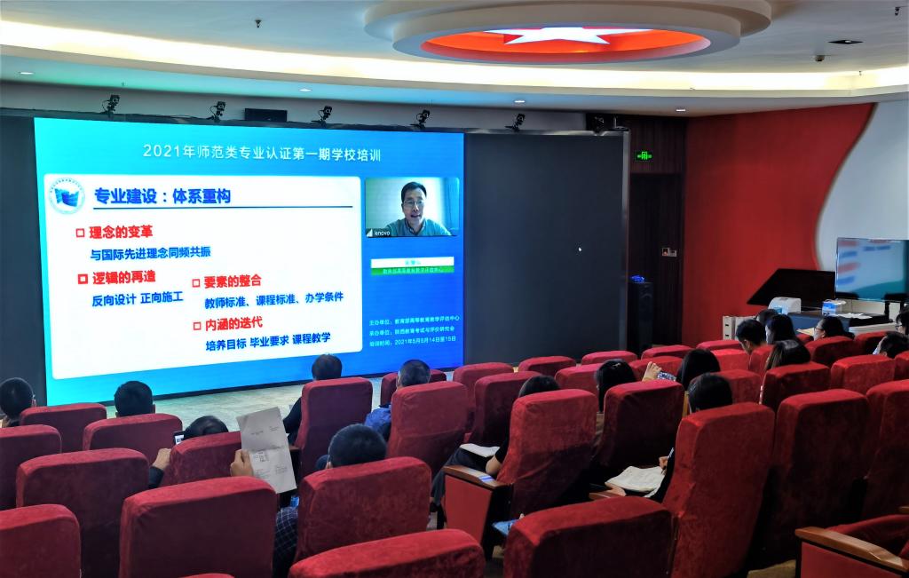 为全面、高质量推进师范类专业认证工作,教育部高等教育教学评估中心于5月14-15日举办“2021年师范类专业认证第一期学校培训”。纽约国际官网组织举办师范类专业各单位的班子成员、教务员、专业负责人及骨干教师,职能处室相关领导和教务处全体成员在马克思主义学院思政课教学体验中心收看了培训会全程视频直播。本次培训进一步深入解读了认证理念和标准,强化了对认证“主线”与“底线”要求的把握,研讨了产出评价改进机制建立方法和认证关键技术,并分享了优秀的认证案例。