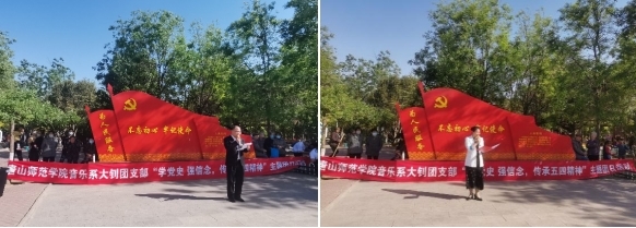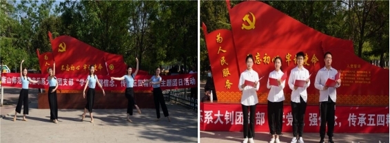 团日活动在社区广场举行。活动中,团员们在团旗下重温了入团誓词,大家表情庄严肃穆,誓词铿锵有力,通过宣誓再次接受了思想和心灵上的洗礼。团员们还表演了《芳华》、《致五四》、《幸福中国一起走》等节目,吸引了不少市民驻足观看,拍手叫绝。