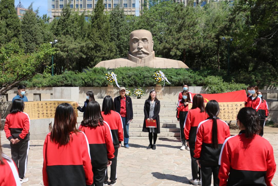 4月28日是李大钊同志英勇就义94周年纪念日。恰逢中国共产党成立一百周年,为教育引导广大青年学子深刻认识红色政权来之不易、新中国来之不易、中国特色社会主义来之不易,更好地传承大钊精神,鼓舞广大青年学生坚定理想信念,彰显时代担当,厚植爱党、爱国、爱社会主义的情感,纽约国际官网数学与计算科学学院、外国语学院的大钊团支部来到大钊公园进行党史学习“微课堂”活动,深切缅怀李大钊同志,深刻领悟“大钊精神”。