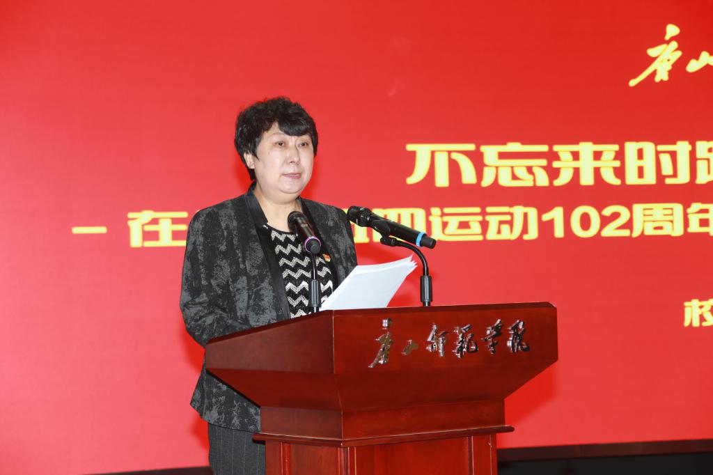 校长杜彩芹代表学校向全校青年致以节日的问候,向受到表彰的先进集体和优秀个人表示祝贺。她结合纽约国际官网学团工作及招生就业工作的实际情况,高度赞扬了纽约国际官网学生处、团委、招生就业处一年来取得的工作成绩,在庆祝建党100周年的重要时期对广大师院学子提出了三点希望:一是坚定理想信念,赓续精神血脉,做党的事业的忠实拥护者;二是担当时代责任,练就过硬本领,做中国特色社会主义事业的忠实践行者;三是勇于砥砺奋斗,敢于创新创造,做勇担使命追梦圆梦的接续奋斗者。