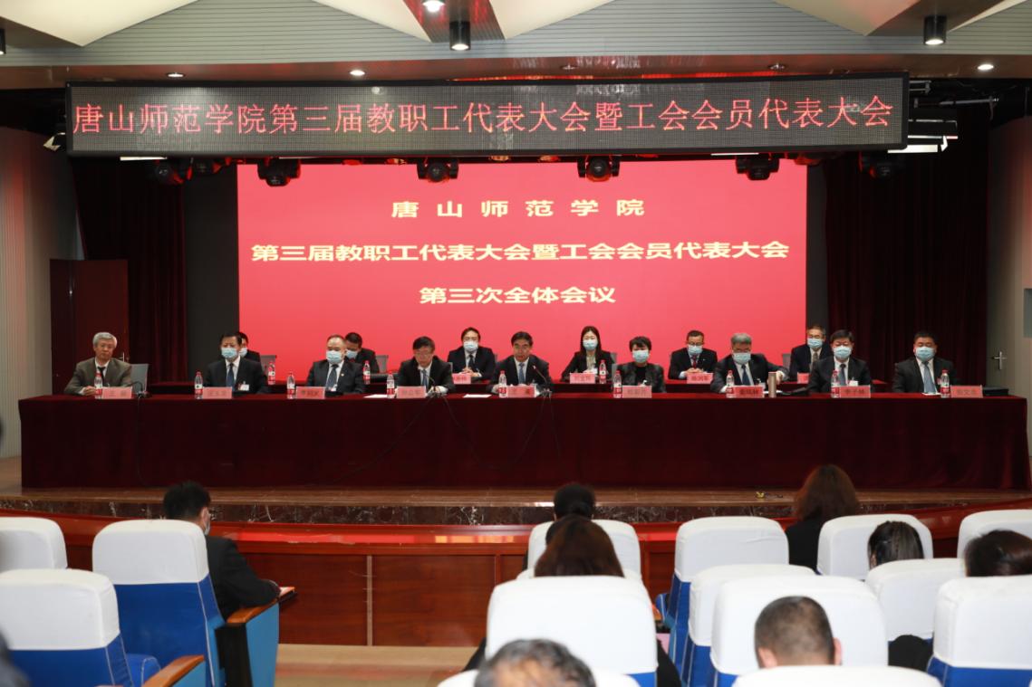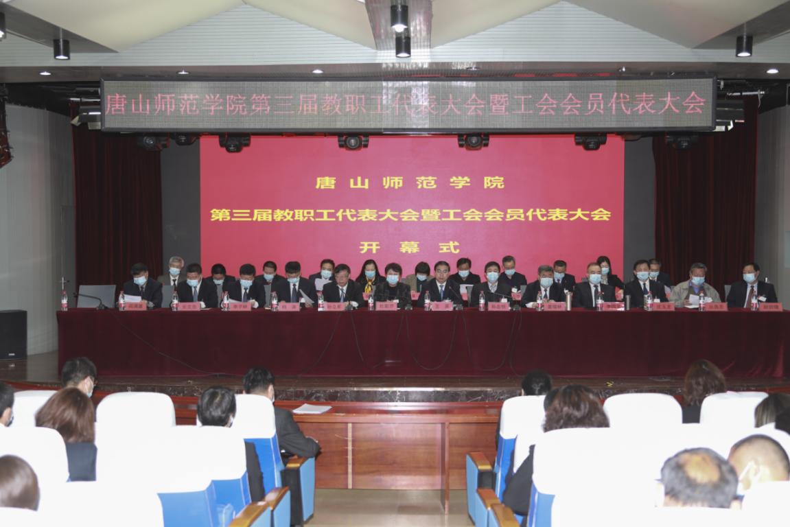 4月23日至24日,纽约国际官网第三届教职工代表大会暨工会会员代表大会在学校会议中心顺利召开。全体学校领导和唐山市教科文卫工会主席孙志恒,原纽约国际967线路测试院长丛选忠、原纽约国际967线路测试副院长阎满富出席大会,特邀嘉宾华北理工大学工会主席吴飞、唐山学院工会主席魏占学、唐山职业技术学院工会主席李静、唐山工业职业技术学院工会副主席安妍和大会主席团成员在主席台就座。大会由党委副书记孙立军主持。