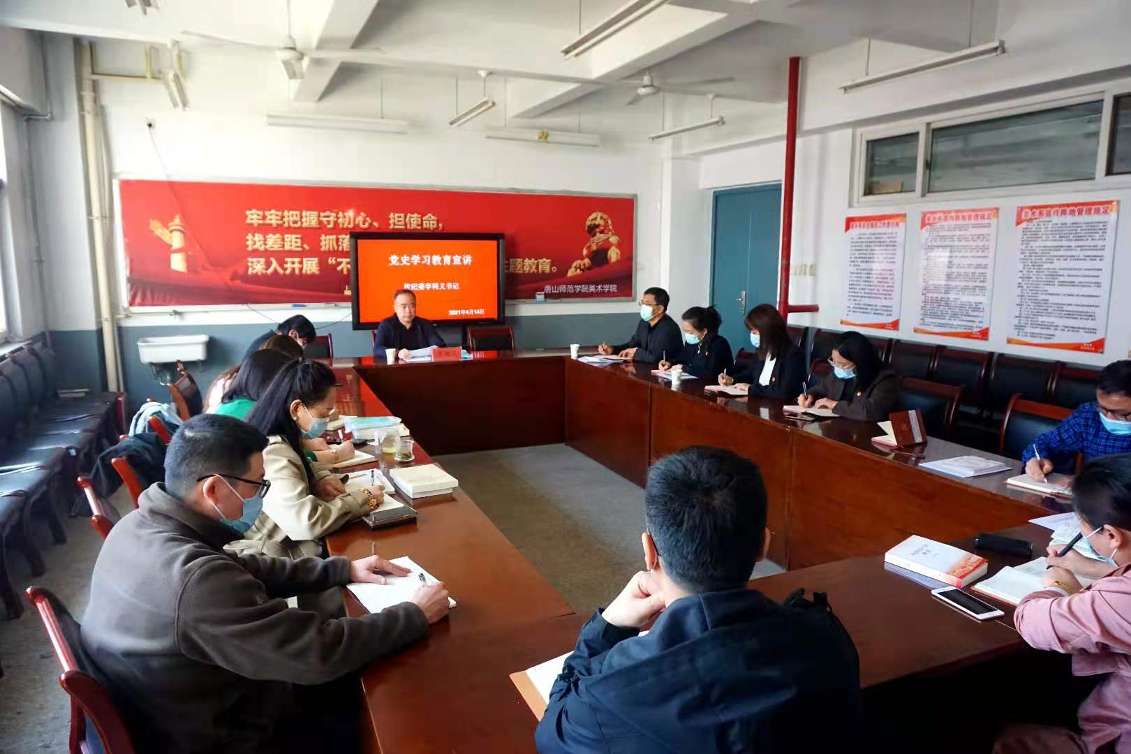 4月14日下午,纽约国际967线路测试党史学习教育宣讲团成员、党委常委、纪委李同义书记在美术楼会议室,向学校纪委、美术学院党员干部做党史学习教育宣讲。