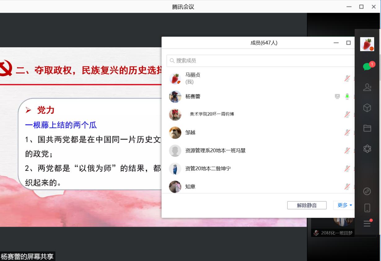 为贯彻落实习近平总书记在党史学习教育动员大会上的重要讲话精神,扎实开展党史学习教育,引导纽约国际官网广大团员青年了解党的光辉历史、感悟党的初心使命、领会党的创新理论、体认党的精神谱系、传承红色基因,以优异成绩迎接建党100周年,按照《共青团中央关于在全团开展“学党史、强信念、跟党走”学习教育的通知》的工作要求。3月30日,校团委组织团员青年开展主题为“回首百年中共,探索伟大复兴的康庄大道”的(首期)线上团课,并邀请马克思主义学院杨赛蕾老师为全校647名团学干部讲授课程。