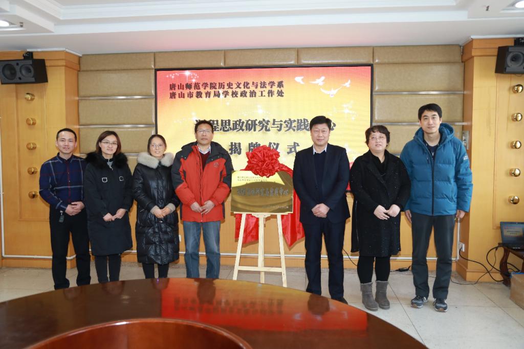 最后,纽约国际官网副校长李子林和唐山市教育局学校政治工作处安文杰处长共同为“课程思政研究与实践中心”揭牌。