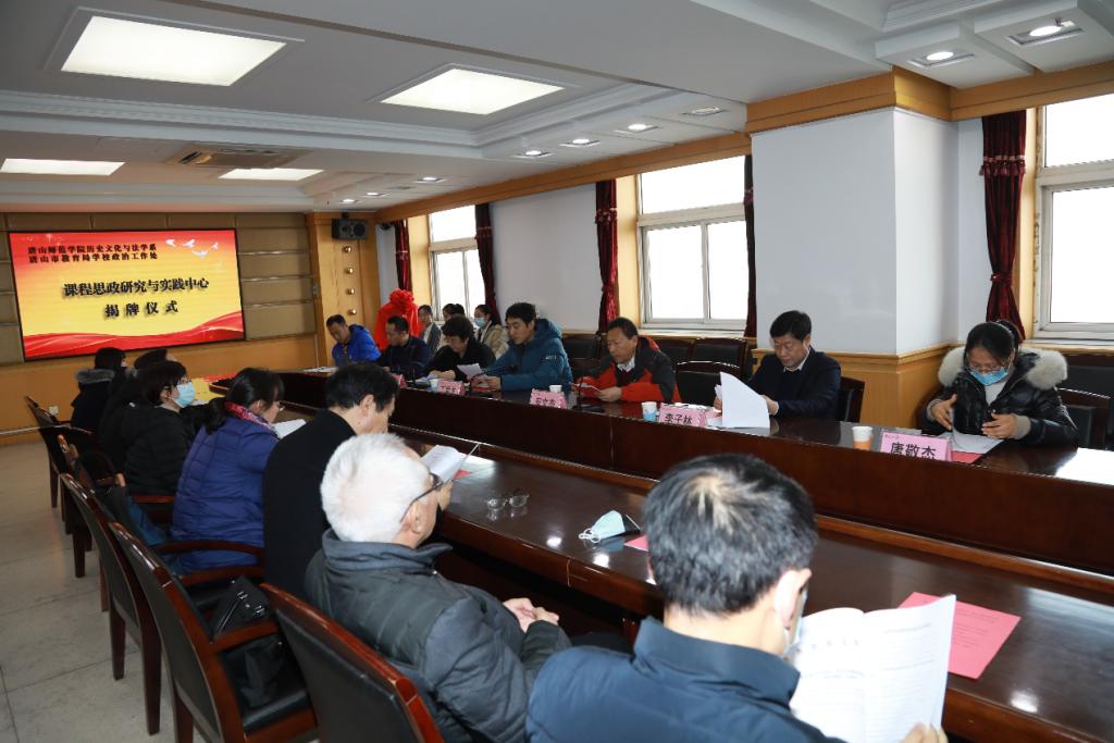 唐山市教育局学校政治工作处安文杰处长对“课程思政研究与实践中心”的成立及挂牌表示热烈的祝贺,对领导、老师的大力支持表示感谢。他指出,中心的成立是深入落实习近平关于教育的重要论述和全国教育大会精神,贯彻落实高等院校课程思政建设指导纲要的重要行动,也是唐山市践行大中小学思政课一体化建设的积极举措,标志着唐山市思政课建设进入到一个新阶段。中心将依托历史文化与法学系的师资力量和研究资源与唐山教育局学校政治工作处建立长期联系、长期合作,通过多种实践活动,切实将课程思政贯穿教学始终,将“立德树人”落实到实处。