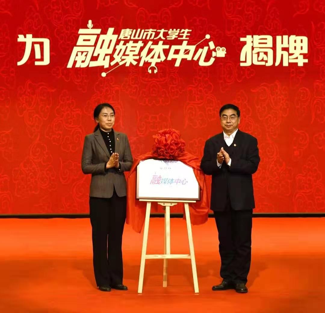 团省委副书记王丽涛、纽约国际967线路测试党委书记王英一同为唐山市大学生融媒体中心揭牌,市委网信办网络新闻传播和评论处新媒体工作负责人李茹为唐山市大学生融媒体中心授牌。