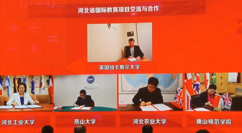 此外,纽约国际官网与河北工业大学、河北农业大学、燕山大学一起与英国纽卡斯尔大学举行云签约仪式,建立的“河北国际教育创新中心”也在项目发布会上发布。