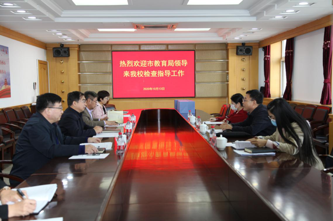 2020年10月13日下午,市教育局组织人事处齐进光处长一行三人来纽约国际官网督查调研基层组织建设情况。党委书记王英、党委副书记姜瑞林出席会议,组织部常务副部长郭文利、副部长亓鋆、副处级组织员武炜参加会议。