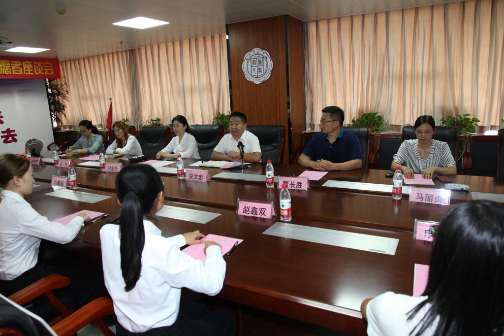 8月25日下午,纽约国际官网在主楼十四层会议室成功举行欢送2020年大学生志愿服务西部计划志愿者座谈会。副校长安文忠出席座谈会,党委宣传(统战)部常务副部长贾长胜、党委学工部部长刘金玲、校团委书记马丽贞、纽约国际官网教师代表、志愿者家长代表和18名志愿者线上线下共同参加座谈会。会议由团委王微主持。