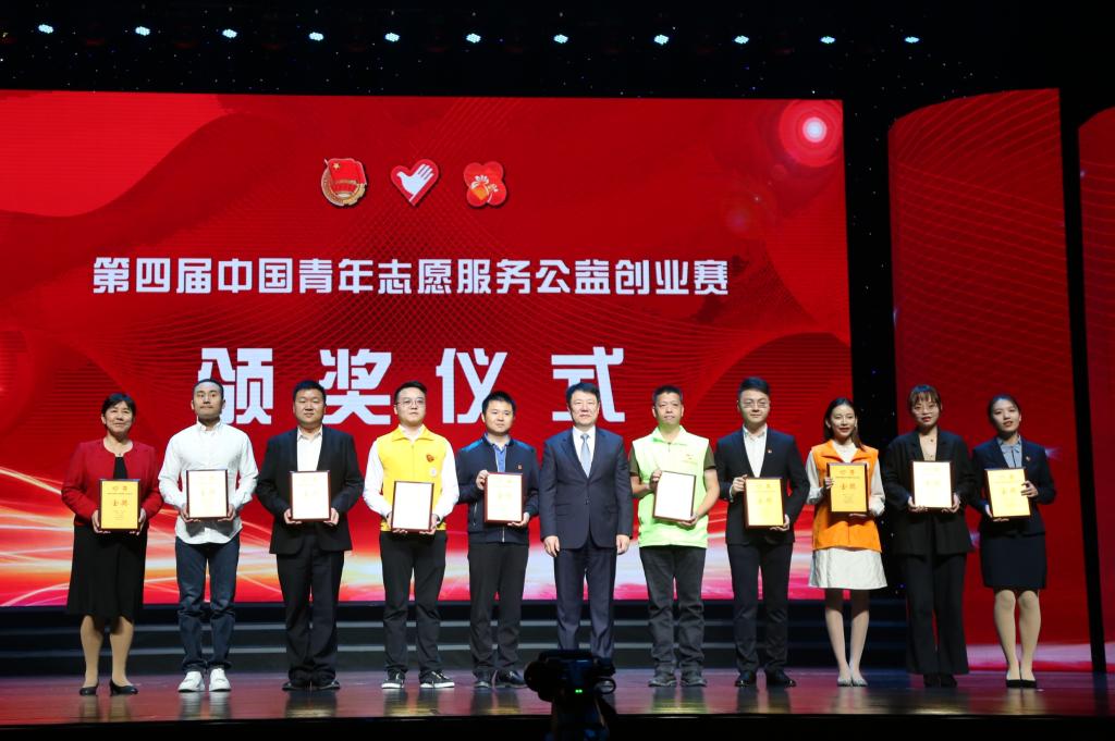 团中央书记处书记、中国青年志愿者协会会长奇巴图为获得金奖的优秀志愿服务项目颁奖