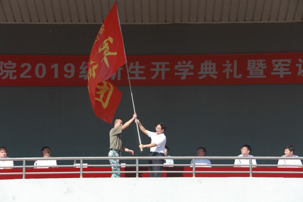 随后,党委书记王英授军训团团旗。
