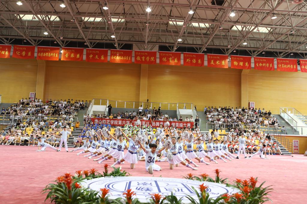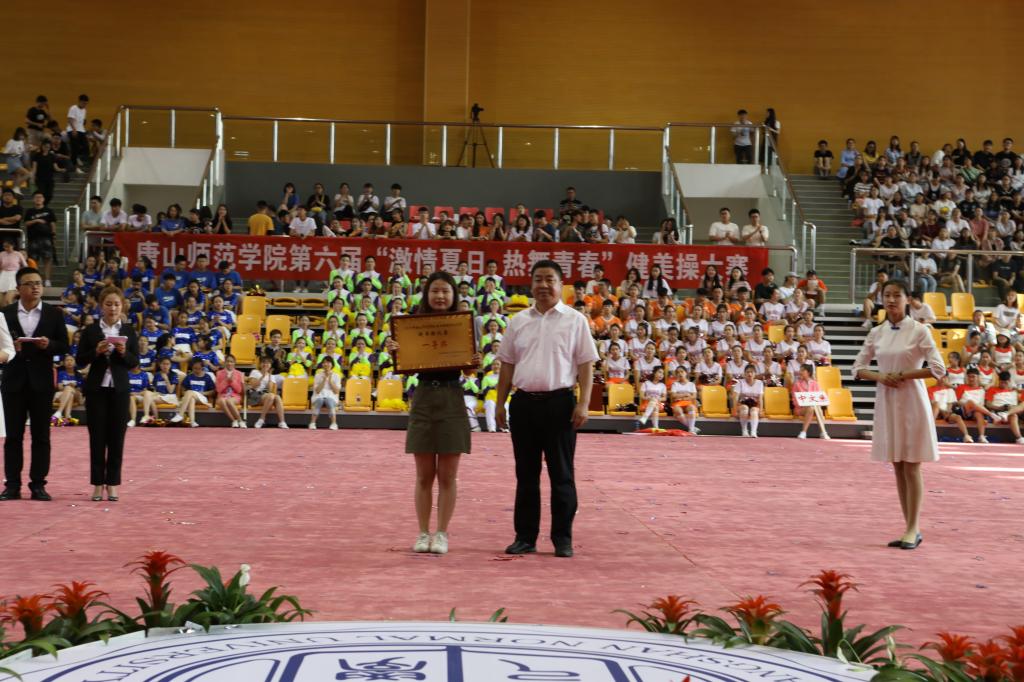 2019年6月21日下午,由校团委主办、体育系承办的第六届“激情夏日,热舞青春”健美操大赛在北院文体馆隆重举行。校党委常委安文忠副院长、学工部孟祥昕部长、后勤处陈克良处长、体育系杨焱书记、学工部蔡玉梅副部长和校团委刘继祥书记出席本次活动,体育系教师赵晓忠、果召全、王松岩、孙宏炜、王立芝、阚晓庆、尤婧玮和孙庆浩担任此次大赛的评委。
