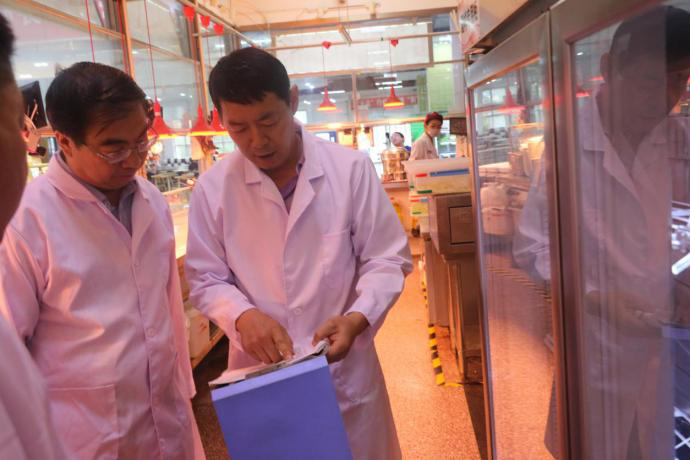 随后,王英书记一行来到一食堂检查卫生和食品安全工作。王英书记详细检查了消毒间、样品保鲜柜等重点区域的卫生状况,并要求食堂管理工作要做到精益求精,在日常工作中严格执行各项规章程序,确保学生食品卫生安全。
