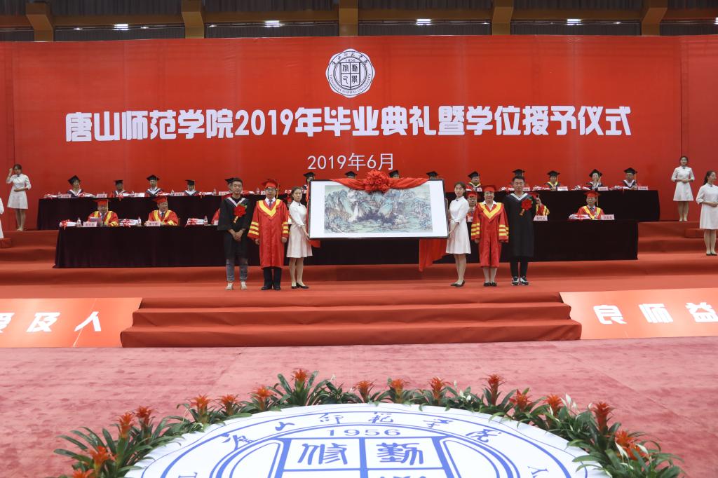 全体毕业生为感谢学校各位领导、老师的关怀和教导,向学校赠送了名为“高山流水”的纪念品,其主要含义是祝愿学校如高山一般巍峨挺拔,学校的发展像流水一样源远流长,生生不息,充满生机,以此来表达对学校的感激之情,为母校献上最诚挚的祝福。王英书记和杜彩芹院长代表学校接受了毕业生的珍贵礼物。