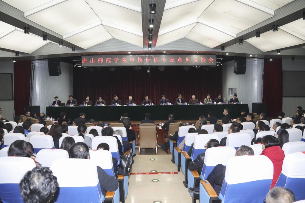 12月20日下午,学校本科教学工作审核评估专家意见反馈会在会议中心举行。专家组全体成员及河北省教育厅副厅长王廷山、河北省教育厅调研员高明、唐山市副市长曹全民、唐山市政府办公厅副秘书长孙友树、唐山市教育局党组书记兼局长刘绍辉、 唐山市政府办公厅文教处处长李泽辉、唐山市教育局高教职成处处长张相奎、唐山市政府办公厅秘书李飞出席会议。全体校领导、中层干部、人大代表、政协委员、民主党派和无党派代表、教学督导组组长及教授代表、学科带头人、专业负责人、教研室主任、实验室主任、辅导员代表、学生代表等参加了反馈会。