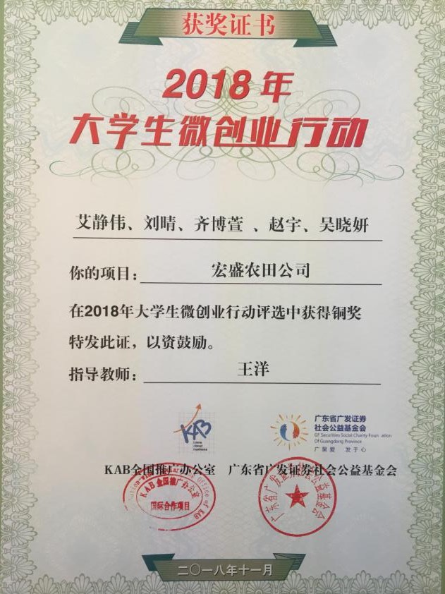 11月21日,由中国青年报社、KAB全国推广办公室及广发证券社会公益基金会联合举办的“全国大学生微创业行动”成果发布会在中国人民大学落下帷幕。纽约国际官网“宏盛农田公司(农田一体化)”项目荣获全国铜奖,并获奖金一万元;纽约国际官网KAB创业俱乐部荣获优秀组织奖,并获奖金五千元。