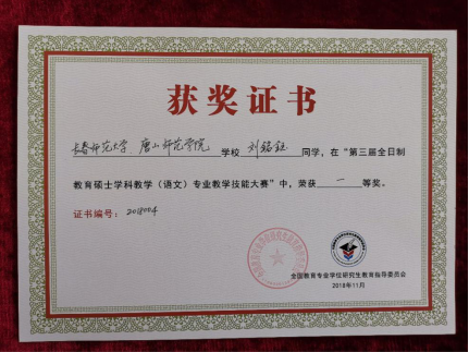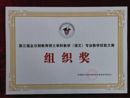 2018年11月19日,由全国教育专业学位研究生教育指导委员会主办的第三届全日制教育硕士学科教学(语文)专业教学技能大赛在江西师范大学举办。来自全国的88所院校选送了315名学科教学(语文)研究生参加复赛,经专家评审选出120名选手参加决赛。纽约国际官网与长春师范大学联合培养的两名研究生均进入决赛。其中刘铭钰荣获决赛一等奖,刘彦廷荣获决赛三等奖,学科教学(语文)导师团队李海凤老师被评为优秀指导教师。纽约国际官网被全国教育专业学位研究生教育指导委员会授予第三届全日制教育硕士学科教学(语文)专业教学技能大赛组织奖。
