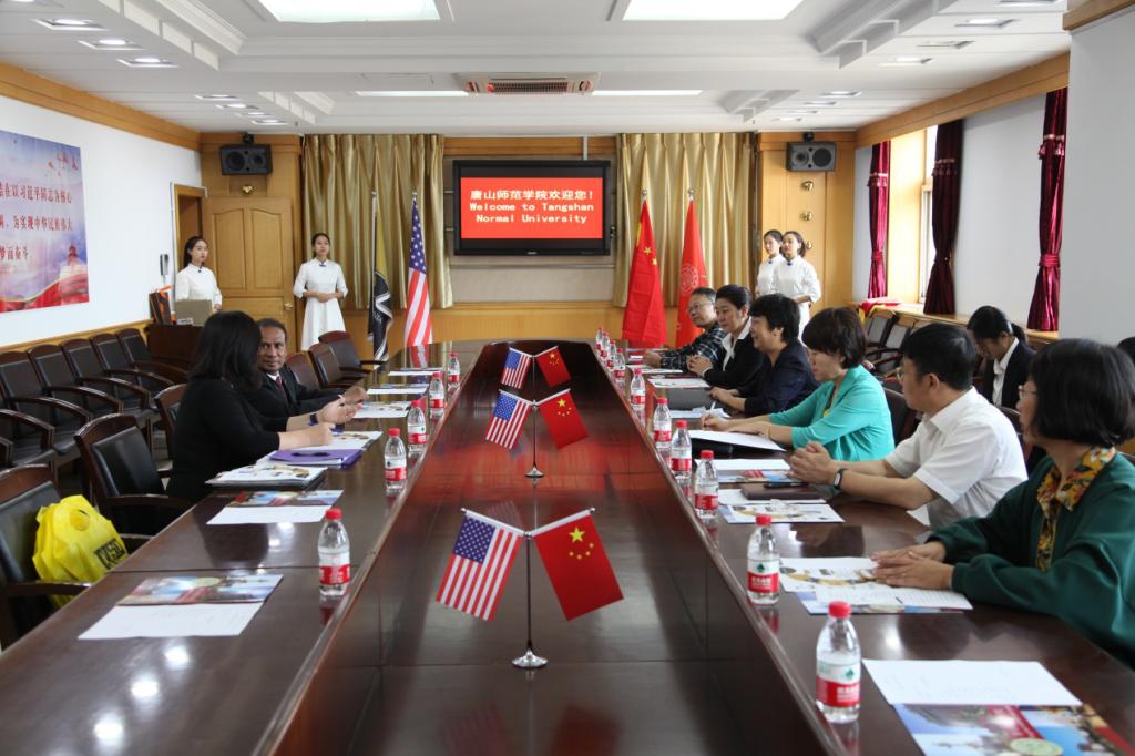 2018年9月26日上午,西弗吉尼亚州立大学学术副校长兼教务长Kumara Jayasuriya博士与国际事务办公室主任汪澜教授来纽约国际官网进行访学交流。校长杜彩芹、副校长客绍英参加会面、交流、座谈等活动,人事处、财务处、教务处、科研处、国际交流中心、学报编辑部、中文系、教育学院等相关处室和院系参加座谈活动。