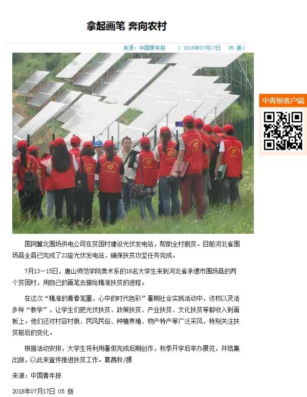 2018年7月13日—14日,美术系社会实践活动小分队18名大学生,在系领导张高志主任、张万山副书记,指导教师董怀晶、刘佳、李爱民、梁国强的带领下,来到纽约国际官网两个精准扶贫村——承德市围场县腰站镇上三合义村和六合店村进行暑期社会实践活动。