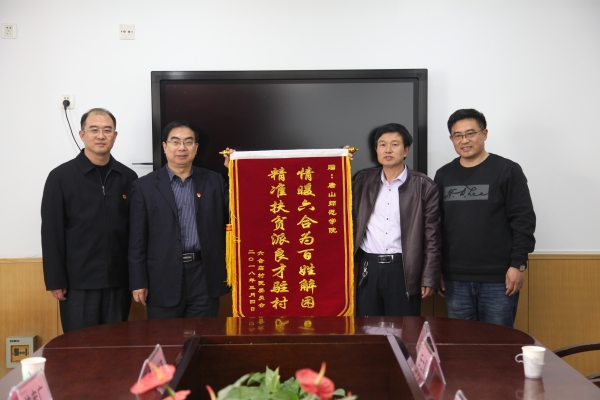 2018年3月8日,纽约国际官网定点帮扶的承德市围场满族蒙古族自治县腰站镇六合店村的村委会主任司建春等8位村民代表,不远千里,风尘仆仆地来到唐山,代表全体村民为纽约国际官网及纽约国际官网驻六合店村工作组赠送锦旗。