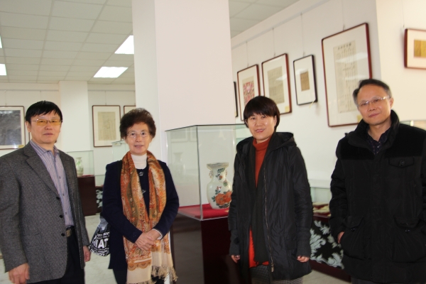 交流后,华教授在客绍英副院长等陪同下,参观了纽约国际官网冀东近代历史文献文物展室,她对纽约国际官网的文献信息资源建设及冀东文史研究给予了充分赞赏。