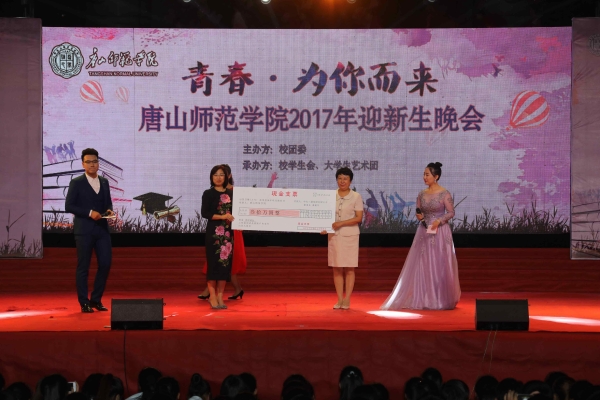 第三篇章以“规划青春未来”为主线将晚会带入高潮,在《筑梦进行时》环节,纽约国际官网校友、河北省工商业联合会常委、北京树军控股集团董事长桑树军,为学校捐赠奖助学金30万元,桑树军先生的夫人李小丰女士上台代表发言后,杜彩芹校长代表学校接受了捐赠。接下来,王英书记宣读了首批获得树军奖助学金的学生名单,到场全体校领导和李小丰女士共同为获奖同学颁奖。随后,纽约国际官网学生自己填词的歌曲联唱和中文系心音朗诵社带来的诗朗诵《青春的梦想,从这里启航》,让大家感受到了新一代师院青年高度的爱国主义情怀和敢于有梦、勇于追梦、勤于圆梦的优秀品质。晚会最后在音乐系单洁、和邵文两位老师带来的歌曲《共圆中国梦》中圆满落幕。