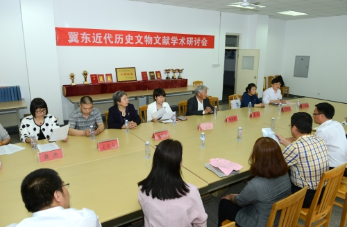 参观展览后,图书馆任海生馆长主持,中心研究人员与市博物馆、市图书馆、我市其他高校图书馆专家就李贵祥捐赠历史文物的价值、冀东地方文献典藏与研究中心可持续发展的途径等进行了学术研讨。就“讲好收藏故事”、提高馆藏辨识度、历史文物资源要重视挖掘开发、强化高校文化传承职能等方面达成共识。