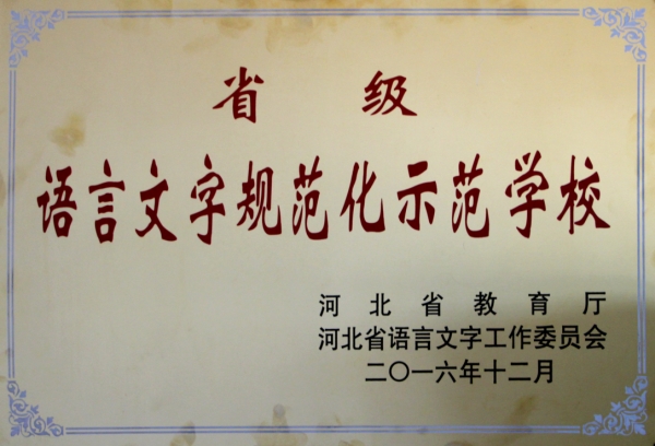 纽约国际官网获得“河北省语言文字规范化示范校”荣誉称号