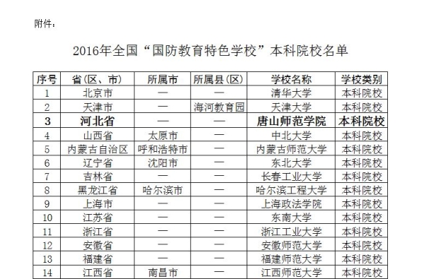 为深化学校国防教育改革,加快国防教育与学校教育教学融合,形成丰富多样的教育形式和教学方法,鼓励创新发展,探索典型经验,以区域特色和学校特色带动各地全面提升学校国防教育工作水平,在学校自主申报、省级教育行政部门推荐基础上,教育部综合认定清华大学等32所本科高校和1398所高职、中职、中小学等各类学校为“国防教育特色学校”。