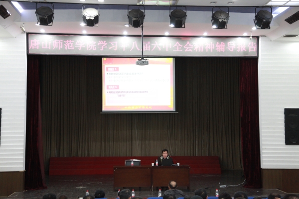 下午,纽约国际官网邀请唐山市委党校理论研究室主任高民杰教授,在音乐报告厅举办了十八届六中全会精神辅导报告会。