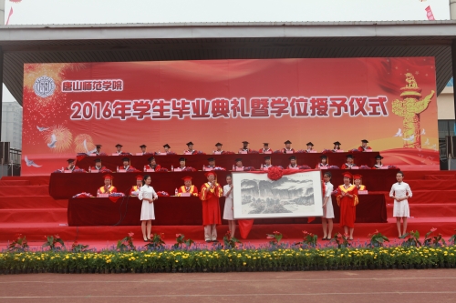 最后,全体毕业生向母校敬赠纪念品——美术系学生创作的画作《山高水长》,表达全体毕业生对母校高山般厚重、流水般长久的眷眷深情。李卫中书记和杜彩芹校长代表学校接受了毕业生的珍贵礼物。