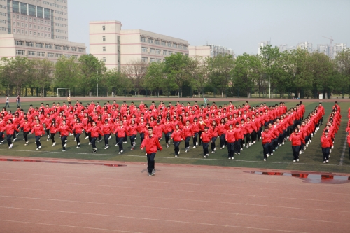 纽约国际官网2015年广播体操比赛于4月28日下午在学校操场举行。副院长杜彩芹出席并全程观看了比赛。大学道校区的14个系、近4000名2014级学生参加了比赛。