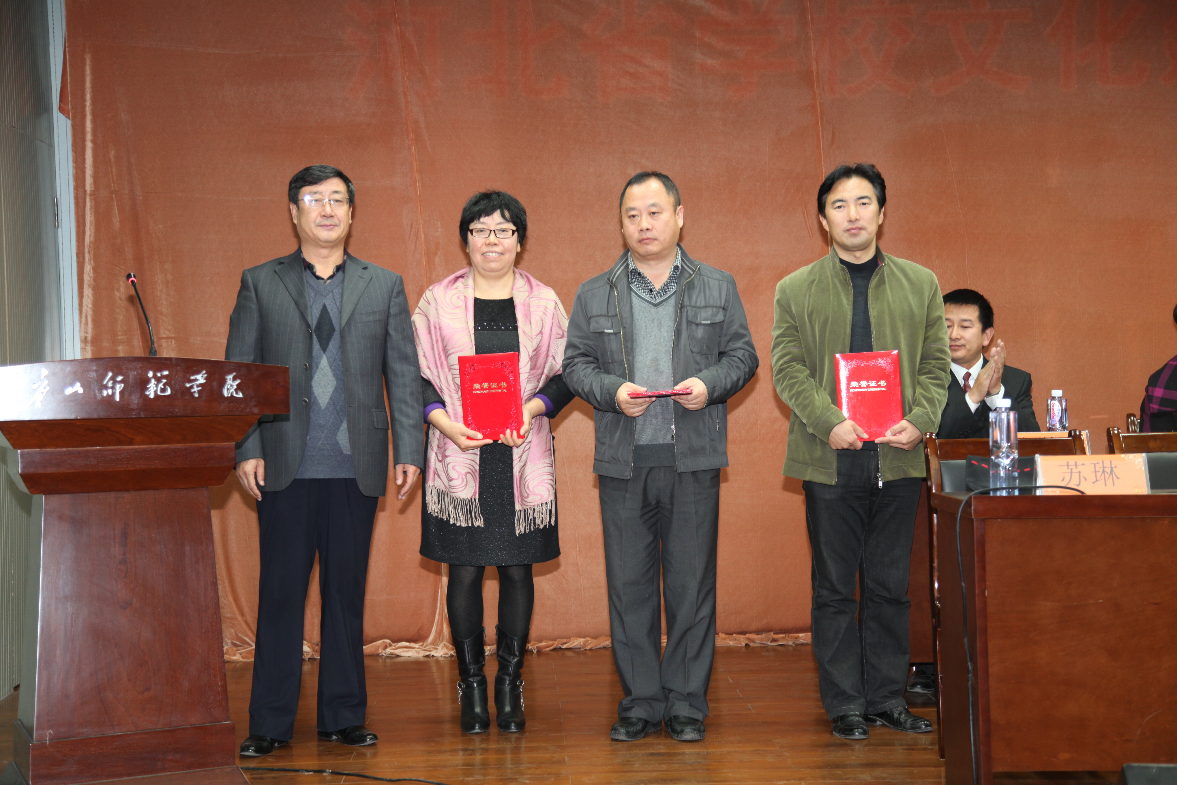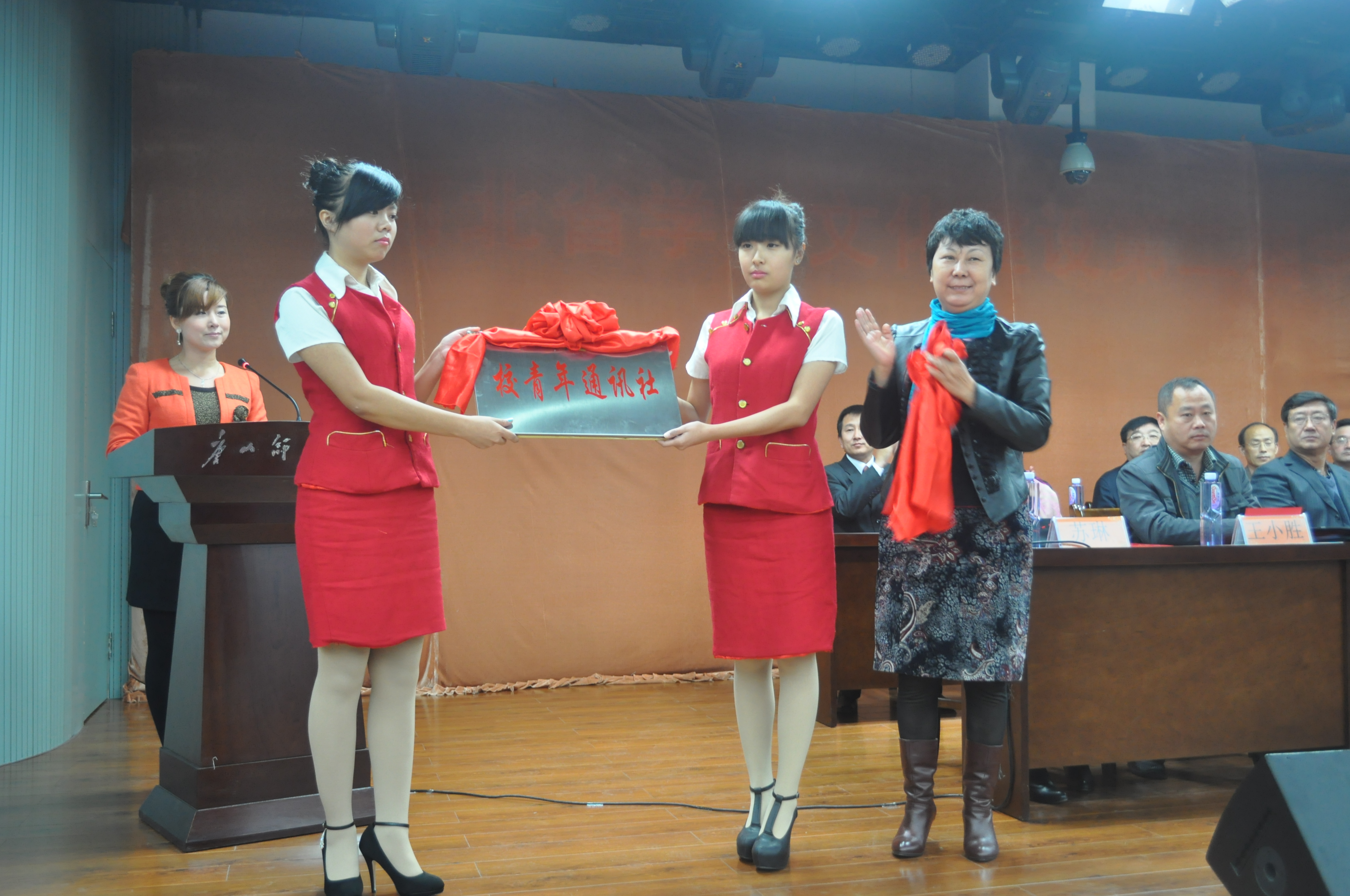 副院长阎满富为特聘客座教授颁发证书,副院长杜彩芹为校团委“青年通讯社”揭牌,中文系党总支书记张学鹏、学生记者代表中文系白硕也相继发言。
