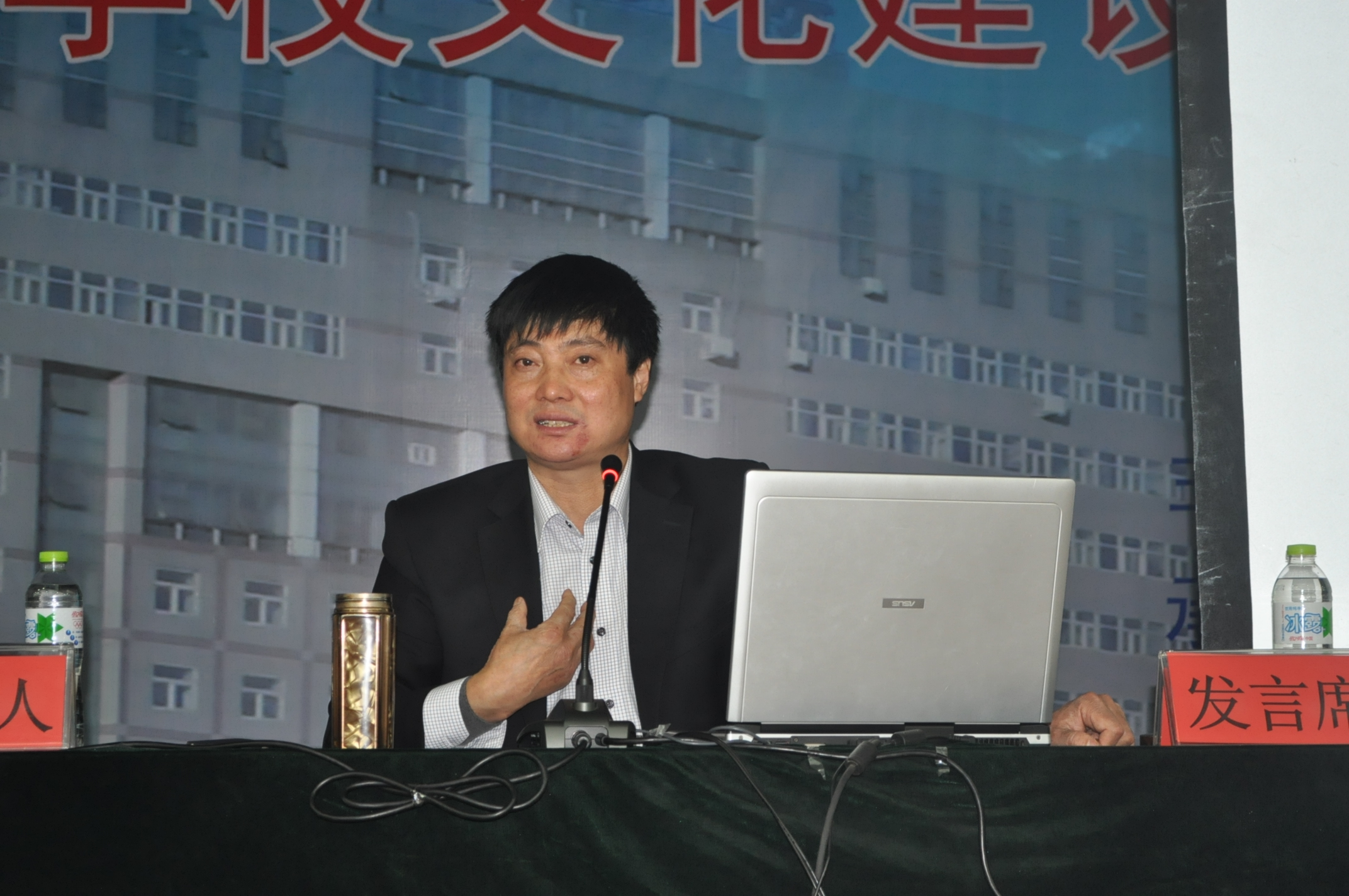 之后,河北省教育学会学校文化研究分会秘书长、纽约国际官网教育科学研究所所长彭贤智教授做了题为《学校文化建设的程序与策略》的专题讲座。彭教授围绕学校文化建设工作的相关内容与现场的各位代表进行探讨。对于学校教育问题,他提出以下思考:一是,办具有文化品位和精神感召力的学校。针对学校“无文化”现象,他说:“一个学校只注重硬件建设,只会有表面的实力,但没有魅力;如果能加强文化建设,以深厚的主题文化为底蕴,打造办学特色,才能提升学校的办学形象,因此,学校文化建设要走出表面,走向升华。”二是,打造学习型学校,创造优质教育资源。他提出:校长要成为学校读书、研究的楷模,学校要成为学习型的组织。三是,做一个有思想的校长。他指出:构建校长成长的两个“车轮”,做勤读书、勤思考、勤写作、勤跟进的“四勤型”校长;做管理工作问题化、管理问题科研化、科研成果管理化、管理讨论反思化的“四化型”校长。四是,一流学校的标准——让主题文化进心灵,成为师生的行为方式,推进文化管理的本质。针对学校文化的概念与结构和学校文化建设的阶段这两部分内容,彭教授又向大家做了具体的阐释和说明。
