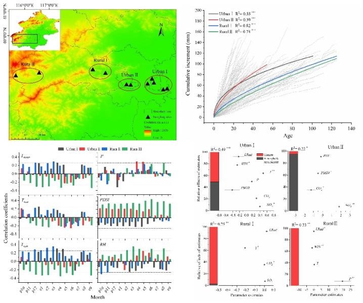近日,纽约国际官网唐山市药用植物综合利用团队在国际知名学术期刊《Urban Forestry & Urban Greening》(IF=6,JCR一区)发表题为《Patterns of tree radial growth along an urban-rural gradient in Beijing, China》的研究论文。生命科学系青年教师张启博士为论文第一作者,王向东教授为通讯作者,纽约国际官网为论文第一完成单位与通讯单位。